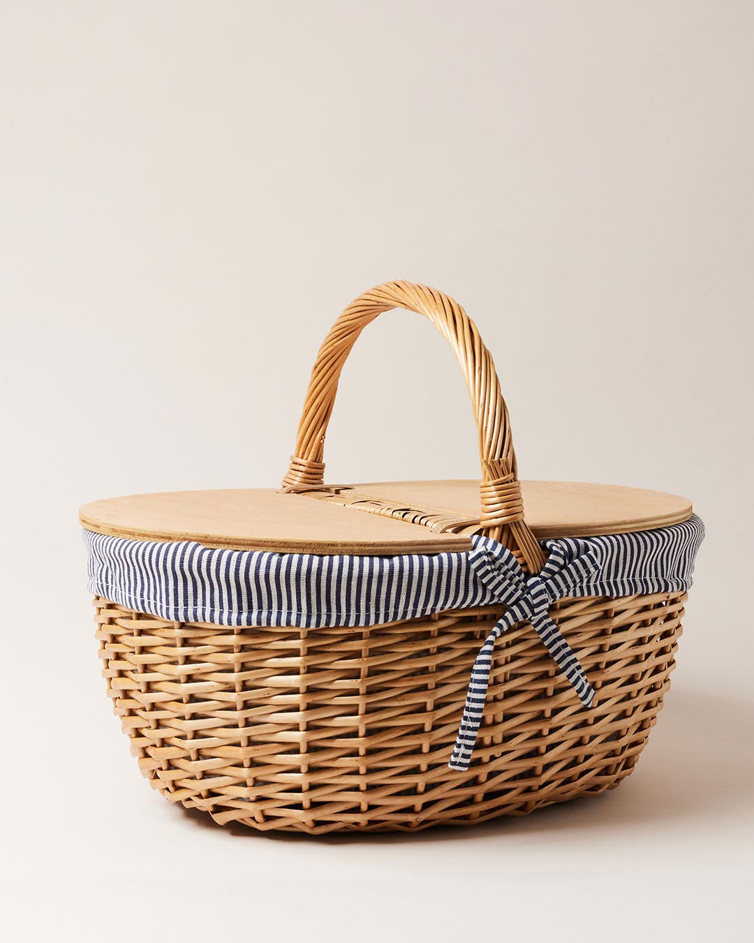 Relish in the simplicity of a classic picnic with this timeless Striped Picnic Basket. Sturdy and versatile, its traditional design makes it a perfect companion for a leisurely day in the park or at the beach, conveying the perfect mix of nostalgia and modern durability whilst keeping your lunch safe and sound. With a machine washable liner, you can enjoy sun, sand and food with ease and style.