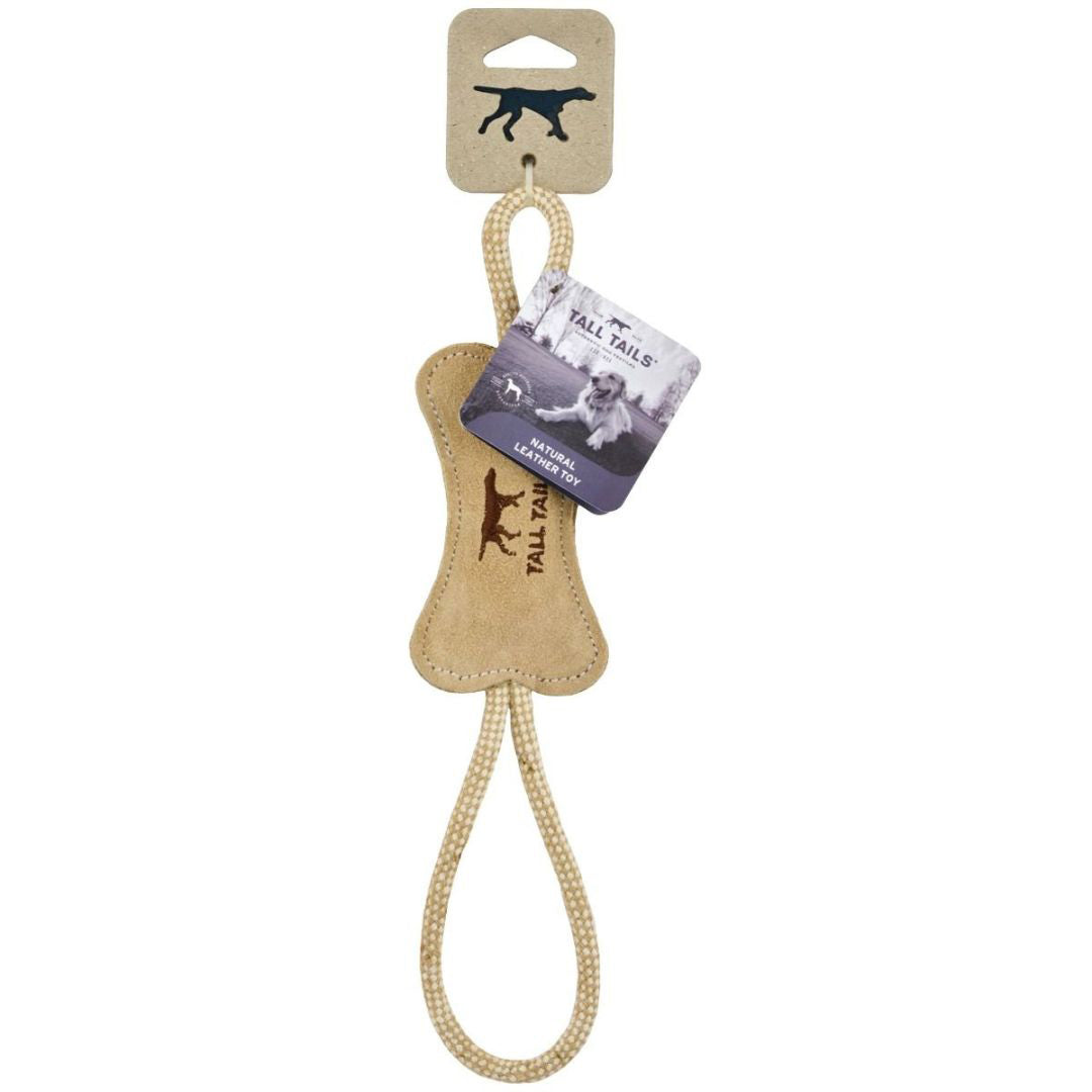 Tall Tails Dog Bone Tug Natural Leather 12 Inches