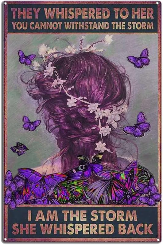 Enhanced Quality: Crafted with care, this "They Whispered to Her You Cannot Withstand The Storm I Am The Storm She Whispered Back Butterfly" retro metal tin sign is constructed from durable tin/metal aluminum, ensuring longevity and a brand-new appearance. Intricate patterns adorn its surface, enhancing its retro charm and adding unique characteristics.