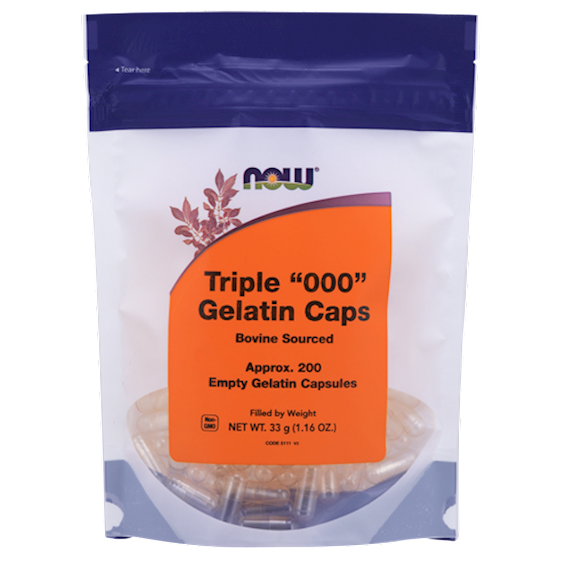 Since 1972 NOW has been offering quality powdered vitamins, minerals and herbs that are ideal for making your own encapsulated supplements. Powdered supplements for home encapsulation require no fillers or binders, are lower in cost, and they can be measured or mixed to create specific blends and potencies. Filling your own capsules can save you up to 50% off the retail price of pre-packaged supplements. These triple 000 gelatin capsules can hold about 1,230 mg of most vitamin or mineral powders. We also supply 1, 3, 0 and 00 sizes as well as veg capsules in 0 and 00 sizes. Not manufactured with yeast, wheat, gluten, soy, corn, milk, egg, fish, shellfish or tree nut ingredients. Produced in a GMP facility that processes other ingredients containing these allergens. Bovine Sourced Approx. 200 Empty Gelatin Capsules Filled by Weight