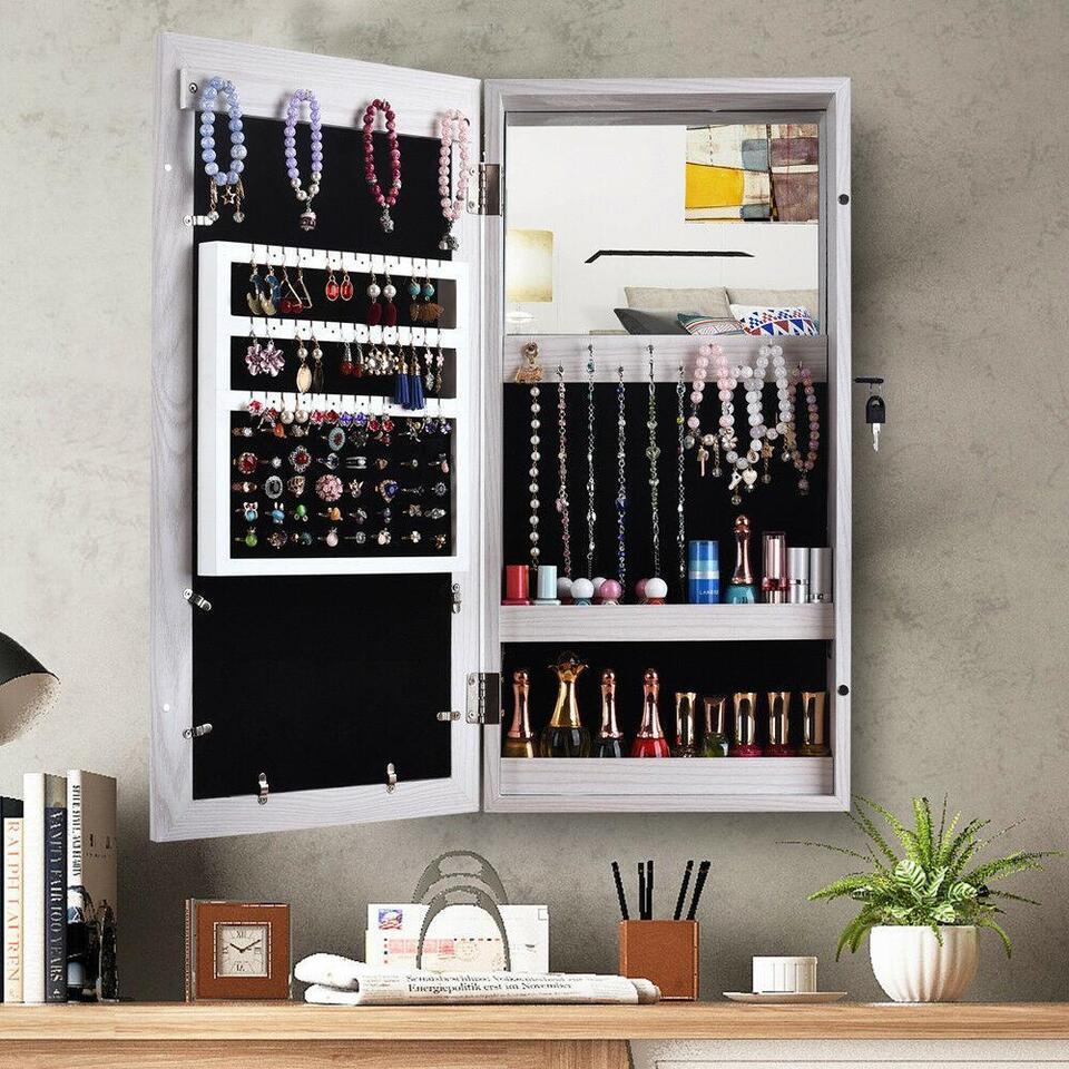 Wall Mounted Mirrored Jewelry Cabinet Armoire Storage Organizer Home Decor White