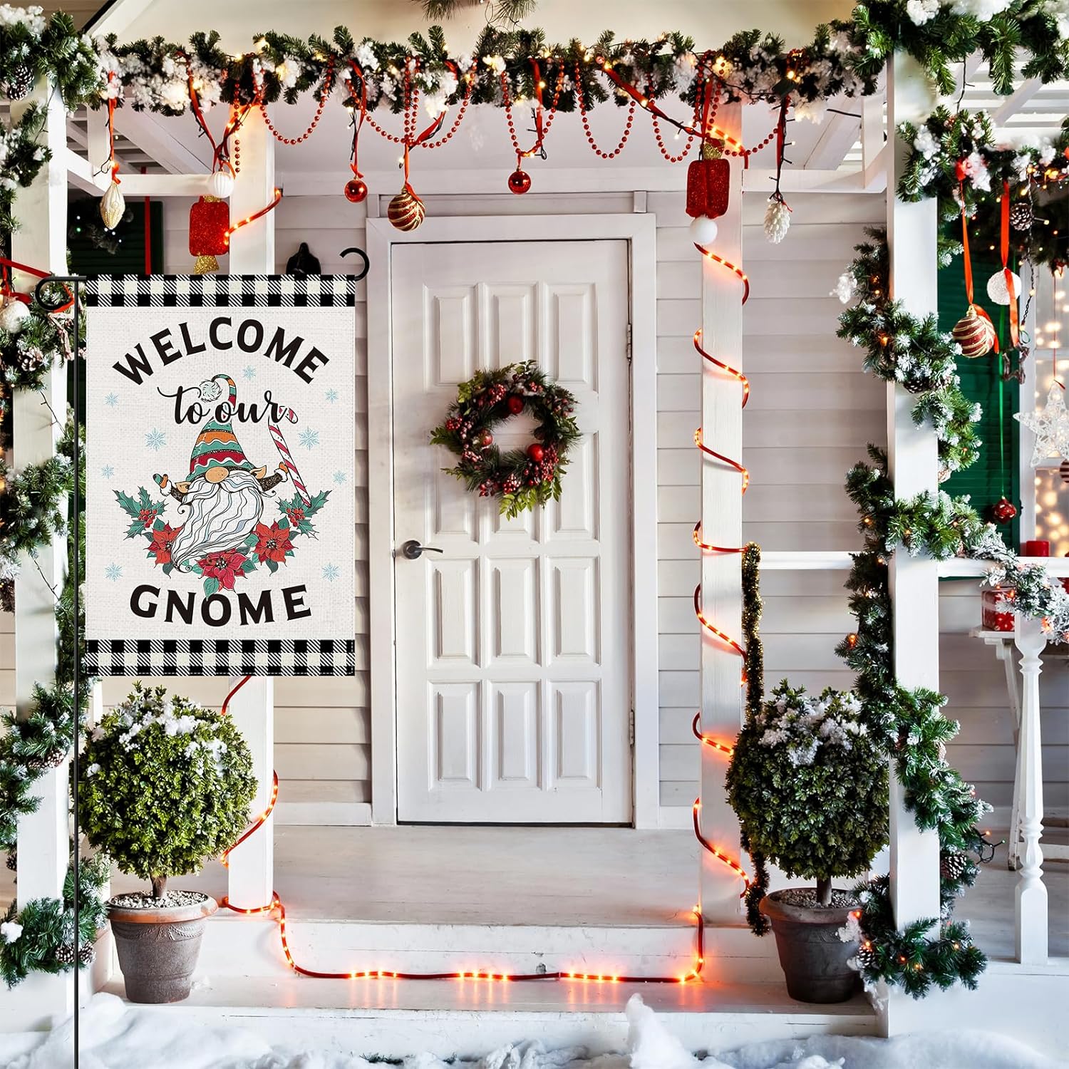 Welcome to Our Gnome Double Sided Yard Flag, Outdoor Holiday Farmhouse Yard Decor, 12x18 Inch