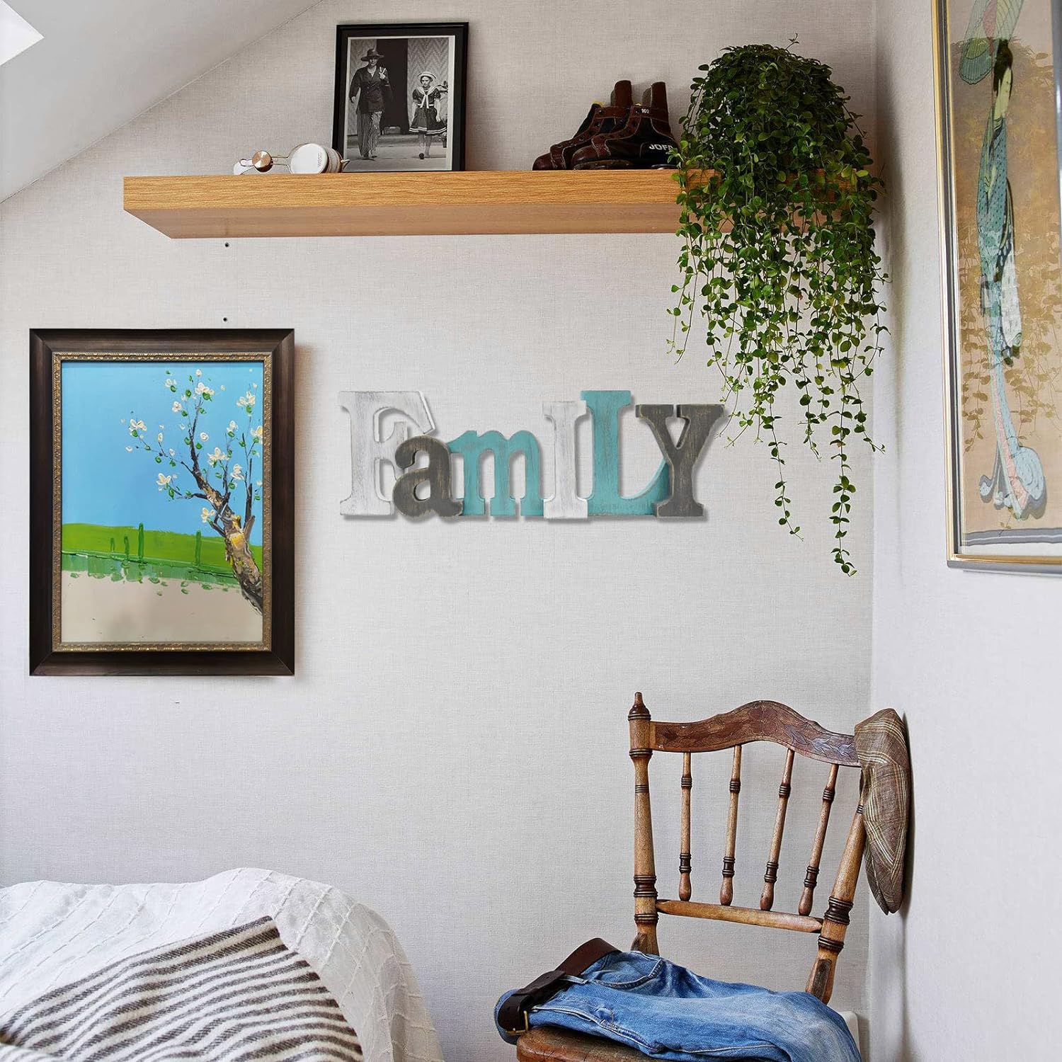 Wood Family Sign Wall Decor Freestanding Cutout Letter for Shelf Table Decorative Letters