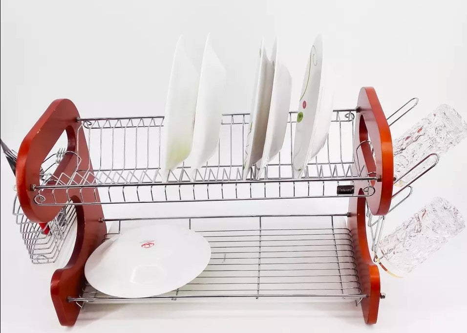Wood Kitchen Dish Rack With Spoon Fork Holder 2 Tier 22 x 14 x 10 inches