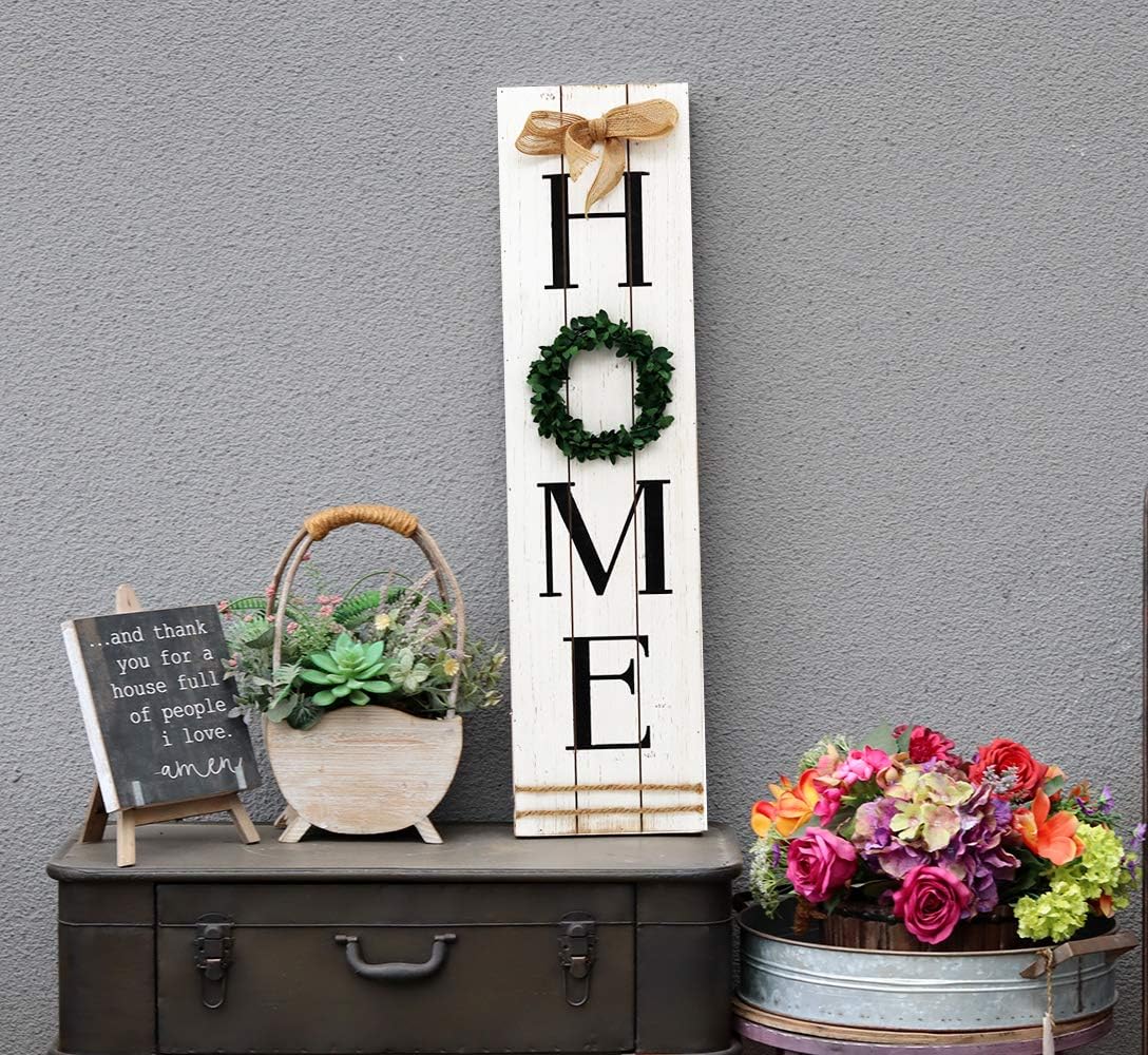 Wooden Home Plaque with Green Wreath|Large Farmhouse Home Signs Plaque
