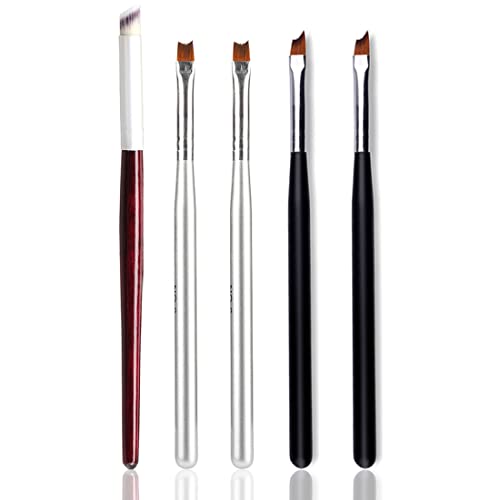 XEAOHESY 5pcs French Tip Nail Brush Set Half Moon Shape Silver Handle Oblique Head Black Handle Nail Brushes Red Wooden Handle Gel Builder Ombre Brush for Nail Manicure Tools