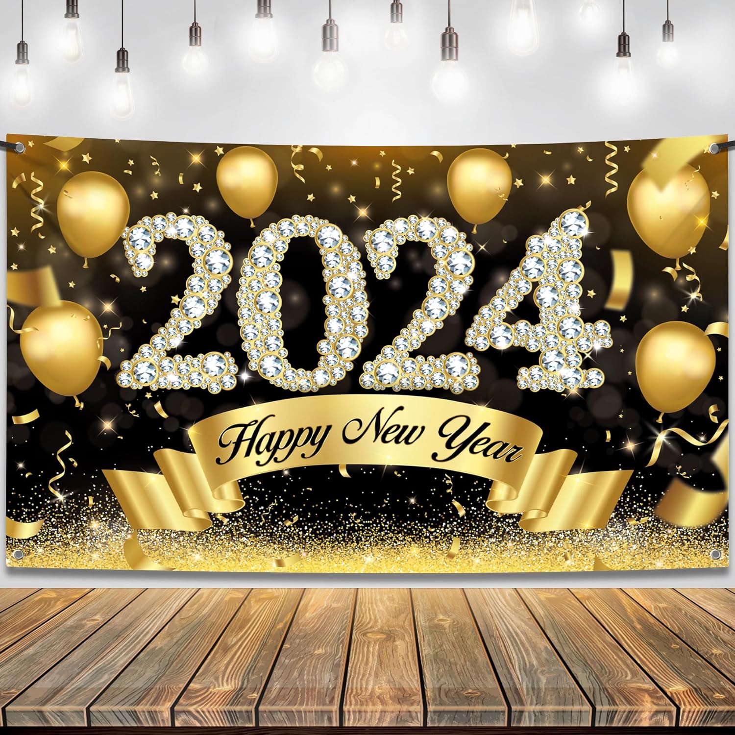 XtraLarge Happy New Years Banner 2024 - New Years Backdrop, 72x44 Inch